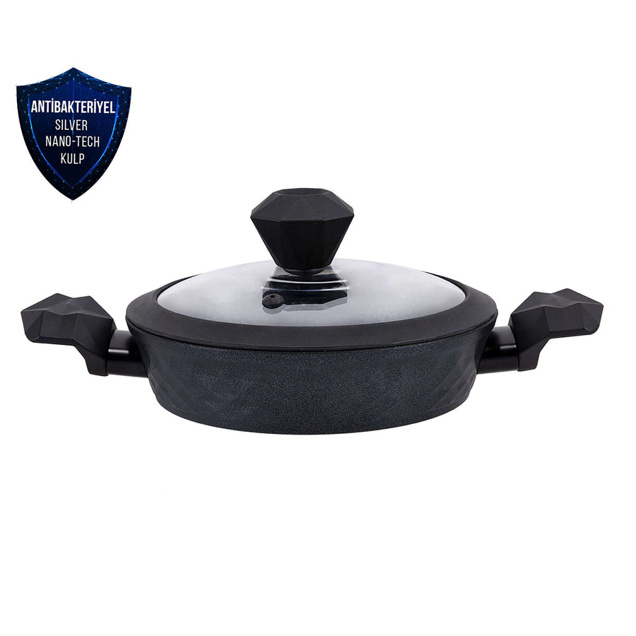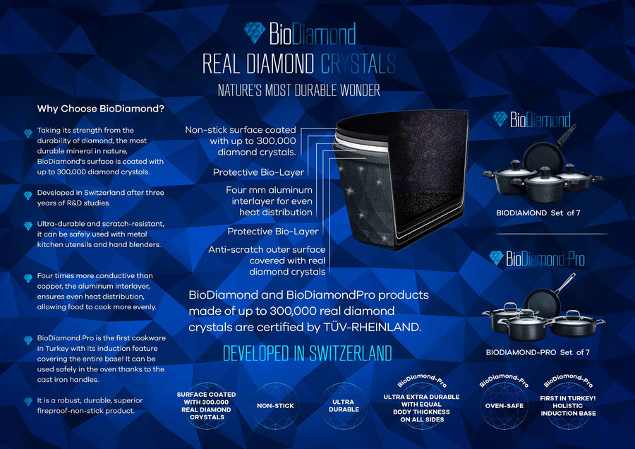 Experience the comfort and control of Karaca Bio Diamond Antibacterial Handle Induction Based 6 Pcs Cookware Set! This set features revolutionary Silver Nano-Tech Handle technology, boasting long-lasting antibacterial properties. Enjoy the unbeatable strength of Real Diamond Crystals, perfectly paired with an ultra-durable, fat and oil-free cooking surface. Suitable for all heat sources, including induction, although dishwasher-safe, we recommend hand washing to enjoy product longevity. this set is PFOA free too! Enjoy a confidence-inspiring cooking experience today!